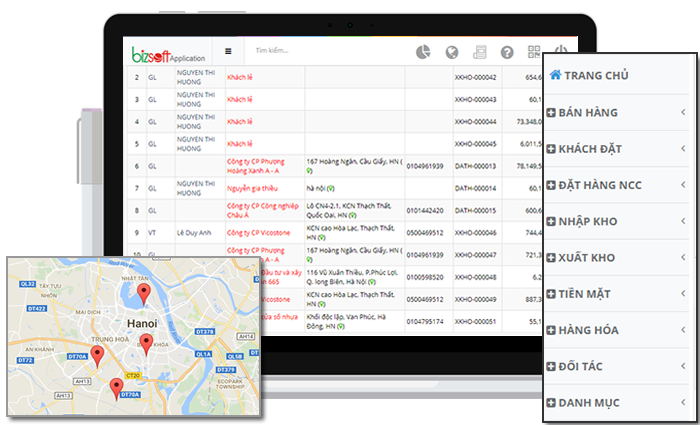 Bản đồ chi tiết các vị trí liên quan đến các cửa hàng hoặc nhân viên kinh doanh